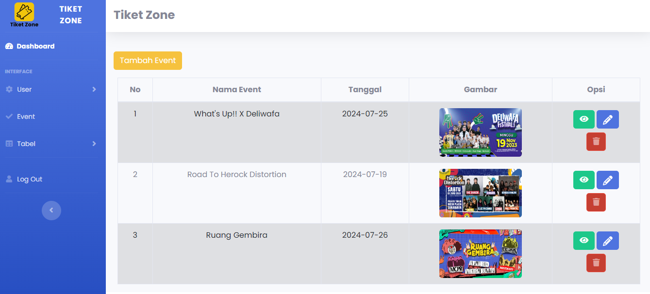 Aplikasi Penjualan Tiket Event Berbasis Web dilengkapi dengan Oauth Google dan menggunakan Laravel 10.